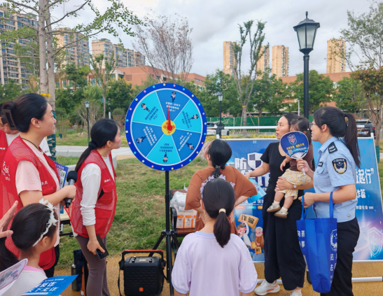傍晚時分,暑熱漸消,納涼廣場上聚集了不少休閑娛樂的居民和帶孩子的家長。司法所工作人員和社區干部、普法志愿者聚焦與居民日常生活息息相關的法律法規,重點宣傳了關于婚姻家庭、鄰里關系、侵權責任等熱點法律知識,以及防范電信網絡詐騙、暑期防溺水安全、夏季防災減災等實用法律常識和安全知識。活動現場通過反詐知識大轉盤互動問答,并結合近期發生的真實案例,用通俗易懂的語言進行“以案釋法”,讓抽象的法條變得生動具體,警示效果顯著。