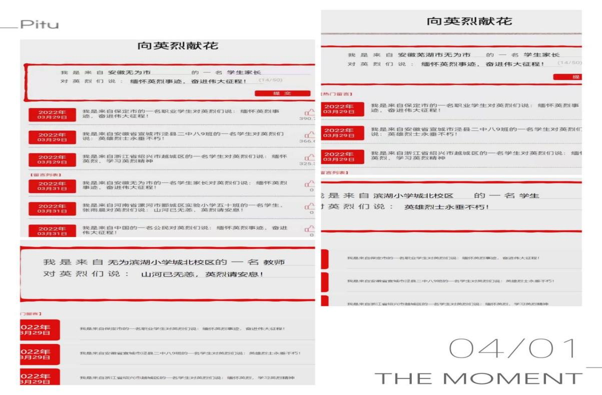3月29日,濱湖小學城北校區校積極對此次活動進行積極宣傳,利用中華英烈網,動員廣大師生、家長組織開展“網上祭英烈”活動。禮敬先烈先輩,傳承紅色基因,感恩幸福生活。