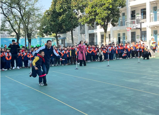 11月13日上午,二年級親子兩人三足比賽如期舉行。賽場上,張若辰同學和父親表現得十分優秀,班級榮獲第一名。就在張若辰同學的父親即將向兒子告別返回部隊的時候,卻發現孩子不見了。沒一會兒,張若辰同學手捧一束鮮花出現在他的面前,用稚嫩的聲音說:“爸爸,您辛苦了。我在家會好好學習,好好聽老師媽媽的話。您就放心吧!”說完,他獻上鮮花,并敬了一個少先隊隊禮。一位流血不流淚的軍人此時流下了激動的熱淚,緊緊地將孩子抱在懷里。