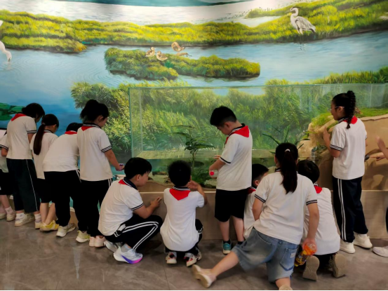 活動前期,學校與竹絲湖游客接待中心科普室工作人員進行了充分溝通,結合小學生的認知特點和興趣點,精心設計了科普講解、互動體驗、知識問答等多個環節,確保活動既具知識性又富趣味性。活動當天,在老師們的有序帶領下,學生們懷著激動的心情來到科普室。一進入科普室,各類圖文并茂的科普展板、造型新穎的科學模型便吸引了學生們的目光,大家紛紛駐足觀看,不時發出好奇的提問。