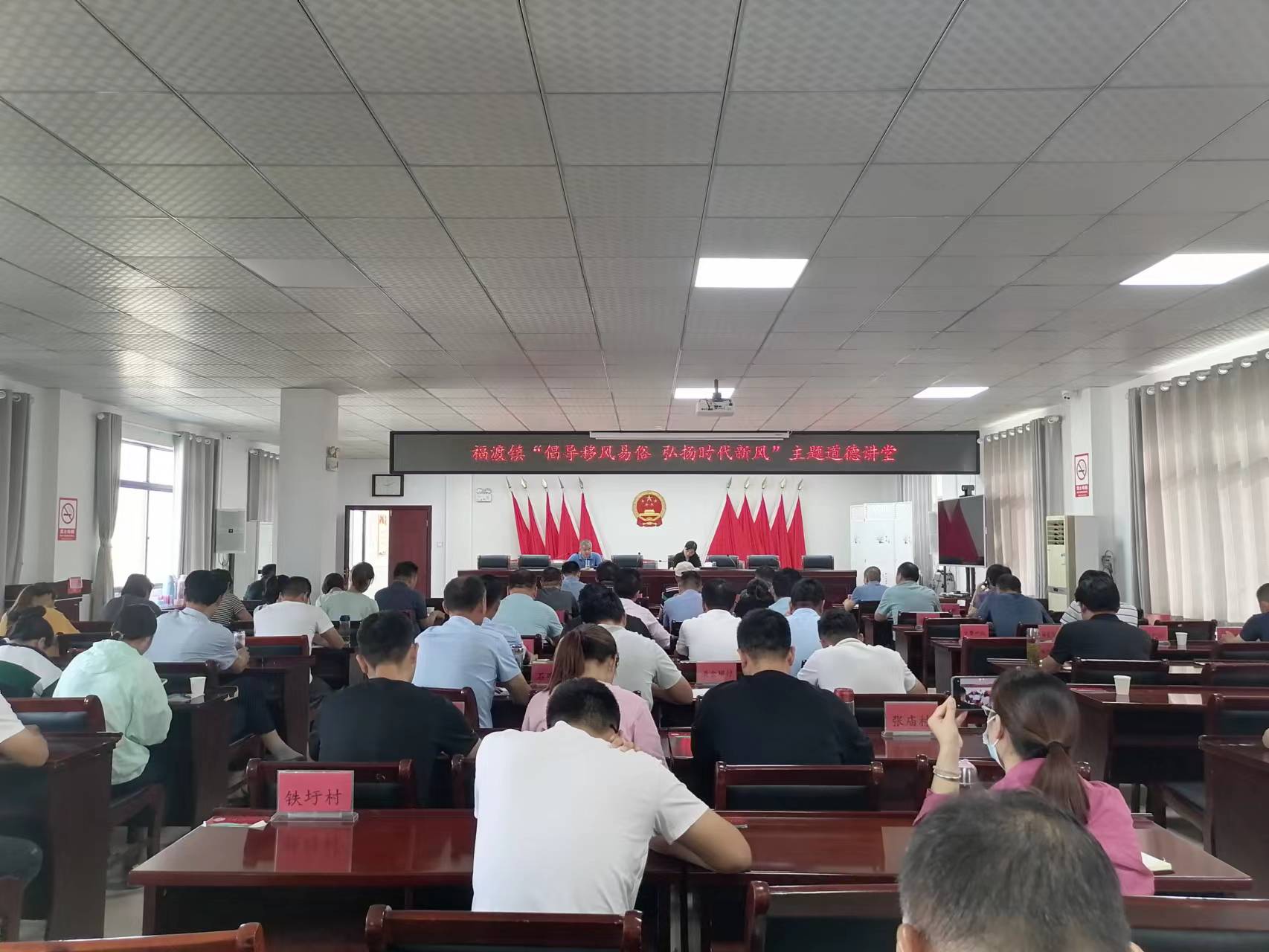 福渡鎮通過發放移風易俗倡議書、張貼宣傳海報、播放電子顯示屏、舉辦道德講堂等多種形式向群眾廣泛進行宣傳,同時在微信群、朋友圈等轉發移風易俗短視頻和公益廣告,通過多方宣傳教育,積極向群眾傳播好、解讀好移風易俗政策精神,讓群眾理解、支持“鄉風文明”建設。